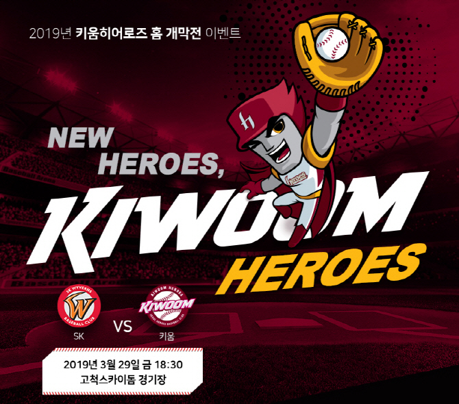 이날 고척스카이돔 장외에 마련된 부스에서는 “새로운 영웅의 검, 그리고 유니폼” 이벤트를 통해 선착순 500명에게 기존 넥센히어로즈 유니폼을 키움히어로즈 유니폼으로 교환해준다. 선착순 3000명에게는 응원봉을 무료로 나눠준다. 유니폼 교환 이벤트는 오는 30~31일에도 각각 선착순 250명까지 3일간 총 1000벌을 제공하며 진행할 예정이다.