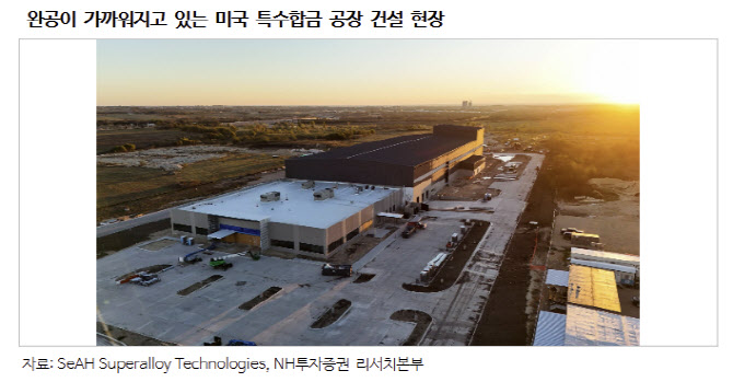 이어 “SST의 가치를 산출하기는 이른 시점이나 Carpenter Technology가 생산능력 10만톤 기준 시가총액 165억달러 수준이라는 점을 감안하면, 생산능력 6000톤인 SST의 가치도 10억달러(약 1조5000억원)까지 가능하다”고 덧붙였다.