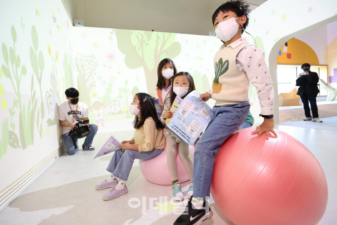 [이데일리 이영훈 기자] 어린이날 이틀 앞둔 3일 오전 서울 용산구 국립중앙박물관 어린이박물관 특별전시실에서 '모두가 어린이' 전시회 언론공개회가 열린 가운데 아이들이 뛰어놀고 있다.