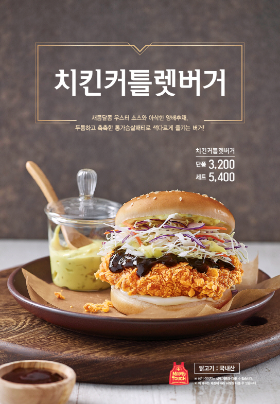 맘스터치 관계자는 “신메뉴 ‘치킨커틀렛버거’는 치킨커틀렛과 버거, 두 가지 요리를 접목시킨 메뉴로 기존 인기 메뉴인 싸이버거, 딥치즈버거와 또 다른 맛을 선사한다”고 말했다.