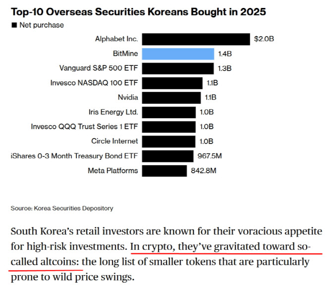 블룸버그는 예탁결제원 자료를 인용해 이같은 2위 소식을 전한 뒤 “올해는 암호화폐를 사 모으는 것을 목적으로 하는 상장 법인, 즉 DAT 회사들이 대거 등장하며 한국 투자자들의 눈길을 사로잡았다”고 진단했다.