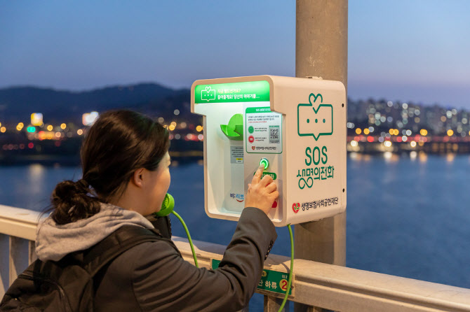 SOS 생명의전화는 한강을 찾은 자살 위기자들에게 따뜻한 위로를 건네며 소중한 생명을 지켜내기 위해 교량에 설치된 긴급 상담 전화기다. 생명보험재단은 현재까지 20개 교량에 총 75대의 SOS 생명의전화를 운영하고, 365일 24시간 전화상담을 지원하고 있다. 특히 최근에는 자살 예방 연간 캠페인 ‘Be:liveU(비리브유)’의 일환으로 SOS 생명의전화 75대를 신규 디자인의 전화기로 전면 교체 및 재정비하며 시인성과 사용 편의성을 높이고 있다.