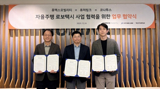 정성민 휴맥스모빌리티 대표는 “전국 모빌리티 인프라와 AI 기반 운영 기술을 통해 자율주행 시대를 대비한 통합 생태계를 구축해왔다”며 “이번 협력으로 국내 자율주행 로보택시 상용화를 앞당기고 모빌리티 산업 혁신을 주도하겠다”고 말했다.