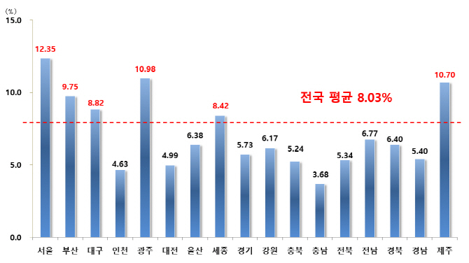 [그래픽]전국 개별공시지가 변동률