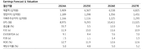 류 연구원은 또 “단기적으로는 하반기 주주환원 및 2025년 가이던스 상향 가능성, 장기적으로는 본업 경쟁력 강화 등을 통한 주가의 우상향이 기대된다”며 “KT&G는 현재 12개월 선행 주가수익비율(PER) 기준 12배 수준에서 거래되고 있는데 상승여력이 여전히 높아 매수 구간으로 추천한다”고 밝혔다.