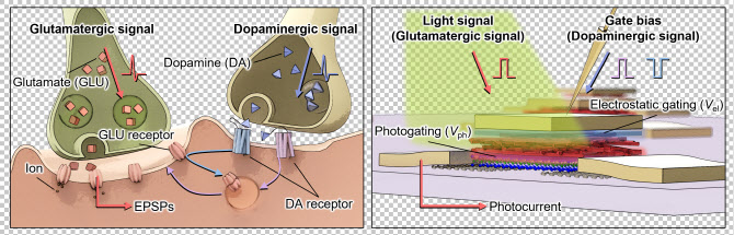 이번 센서는 뇌 시냅스의 도파민-글루타메이트 신호 전달 원리를 모방해, 밝기 대비가 큰 윤곽 정보를 선별적으로 추출하는 기술이 적용됐다.