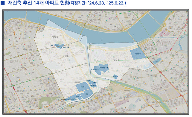 대상 지역은 강남구 대치동, 삼성동, 청담동 10개 단지와 송파구 잠실동 4개 단지 총 14개 단지로, 면적은 1.43㎢에 달한다.