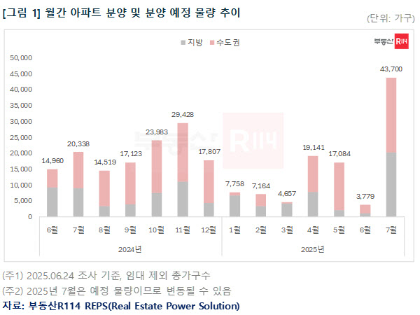 30일 부동산R114에 따르면 전국에서 53개 단지, 4만 3700가구(임대 제외 총 가구 수)가 분양 물량으로 나온다. 올해 월간 기준 2만 가구가 채 되지 못했던 분양 물량이 전월 대비 12배에 달하면서 예비 청약자들의 선택지가 넓어질 전망이다.