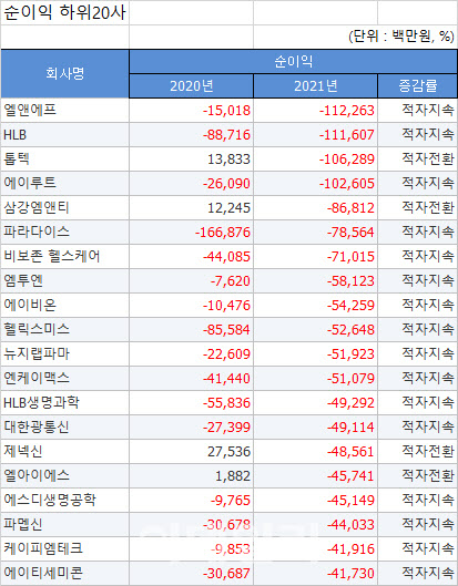 - [2021 코스닥결산][표]개별 매출액 증가율 상위20사 - [2021 코스닥결산][표]개별 매출액 하위20사 - [2021 코스닥결산][표]연결 순이익 감소율 상위20사