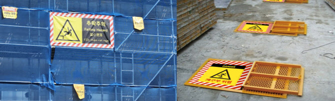 삼화페인트는 호반건설의 브랜드 정체성을 유지하면서 건설 현장에서 주로 발생하는 사고와 관련한 안전 표준을 마련했다. 특히 안전색채 디자인 가이드에 포함된 안전보건표지 픽토그램 등은 다양한 국적의 근로자를 배려한 다국어로 설계했다. 언어 장벽으로 인한 안전 사각지대를 최소화하기 위해서다.