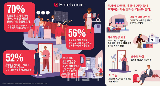 호텔스닷컴이 전 세계 450개 이상 호텔을 대상으로 실시한 ‘2025 호텔 룸 인사이트’ 조사 결과 응답 호텔의 절반 이상(56%)이 여행객의 높아진 기대치를 충족하기 위해 객실 기술을 지속적으로 업그레이드해야 한다는 압박을 느끼는 것으로 나타났다. 호텔 업계가 로봇 집사나 안면 인식 체크인 같은 눈길을 끄는 기술 실험보다 투숙객의 실질적 편의를 높이는 기술 도입에 무게를 싣고 있다는 분석이다.