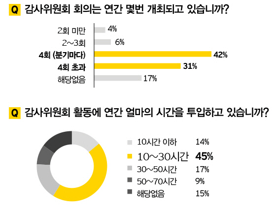 글로벌 회계·컨설팅 법인 EY한영은 설문조사에서 국내 기업 73%는 1년에 4회 이상 감사위원회를 열지만 76%는 연간 감사위 투입 시간이 50시간 미만에 그치는 것으로 집계됐다고 26일 밝혔다.