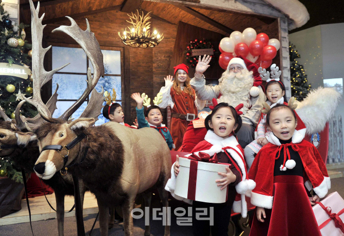 [이데일리 김태형 기자] 20일 서울 광진구 워커힐 호텔 로비에서 어린이들과 산타할아버지가 크리스마스를 알리는 행사를 하고 있다.