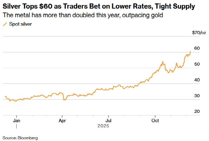 은 시장의 공급 부족도 가격을 끌어올렸다. 벤치마크인 런던 귀금속 시장에서는 지난 10월 인도의 수요 급증과 은 상장지수펀드(ETF) 매입이 몰리면서 역사적인 공급 압박을 겪었다.