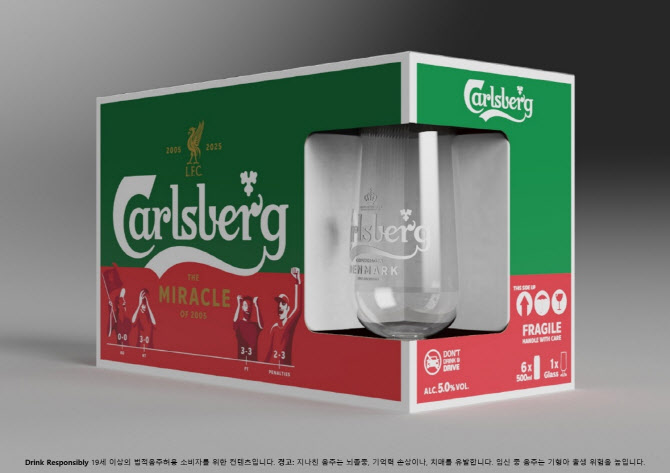 리버풀을 상징하는 강렬한 붉은 색과 칼스버그 고유의 녹색이 조화를 이룬다. 역전 드라마의 주역이었던 선수들의 모습과 주요 장면을 생생하게 묘사했다. 전면에는 ‘2005년의 기적’이란 문구와 리버풀 FC 공식 엠블럼이 더해졌다.
