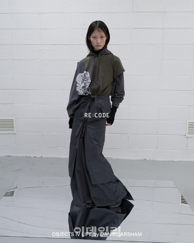 래코드는 오브젝트 포 라이프가 지난 2023년 공개한 ‘Chapter 003’ 컬렉션의 재고 의류를 해체하고 재구성해 협업 컬렉션을 완성했다. ‘현재의 옷이 미래의 유물이 된다’라는 주제로, 래코드는 해당 컬렉션의 재고를 오가닉 코튼, 리사이클 폴리에스터 등의 친환경 소재와 결합하거나 덧대어 새로운 조합으로 구성했다.