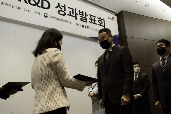 | | 인피닉 박준형 대표(오른쪽)에게 조민영 과학기술정보통신부 소프트웨어산업과장(왼쪽)이 ‘2021 SW R&D 성과발표회’에서 장관 표창을 수여하고 있다. (사진제공=인피닉) |