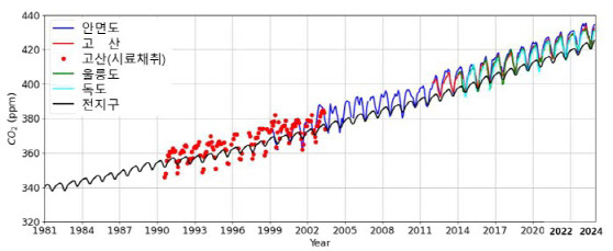 특히 안면도는 1년 전보다 3.1ppm이 증가해 최근 10년(2015~2024년) 중 두 번째로 큰 연간 증가폭을 기록했다. 같은 기간 동안 안면도에서 이산화탄소 배경농도가 가장 많이 증가한 해는 2016년(3.7ppm 증가)이었다. 기상청은 입체적인 온실가스 관측을 위해 2018년부터 항공관측을 시작했는데, 이산화탄소와 메탄의 농도는 모두 지속적인 증가세를 보이고 있다.
