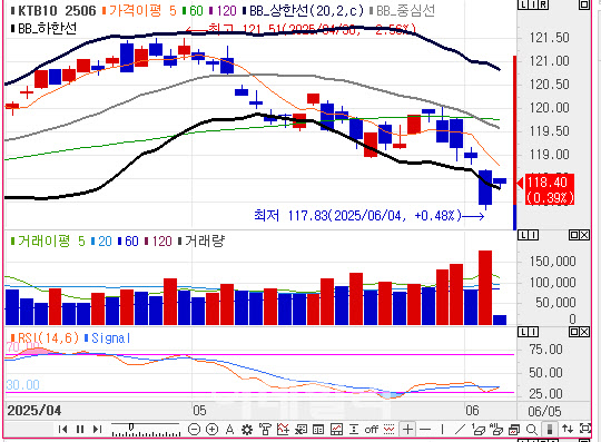 외국인은 장 초 3년 국채선물과 10년 국채선물을 각각 1368계약, 2704계약을 순매도 중이다.