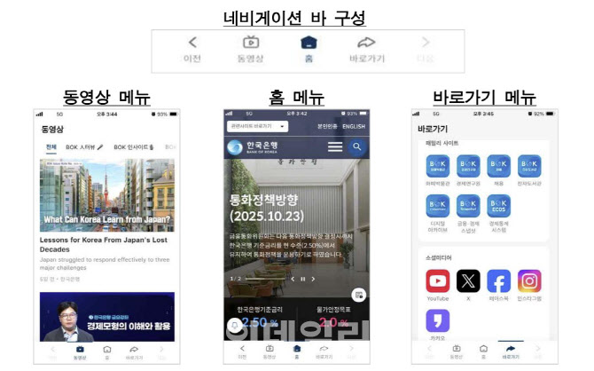 아울러 ‘바로가기’ 메뉴에서는 경제통계시스템, 금융·경제 스냅샷, 디지털아카이브, 화폐박물관 등 한은에서 운용하는 사이트와 인스타그램, 페이스북 등 한은 소셜미디어 채널도 앱을 통해 바로 연결되도록 했다.