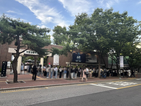 | | ‘쇼맨 NFC 키링’을 구매하기 위해 줄을 선 관람객들(사진=국립정동극장). |