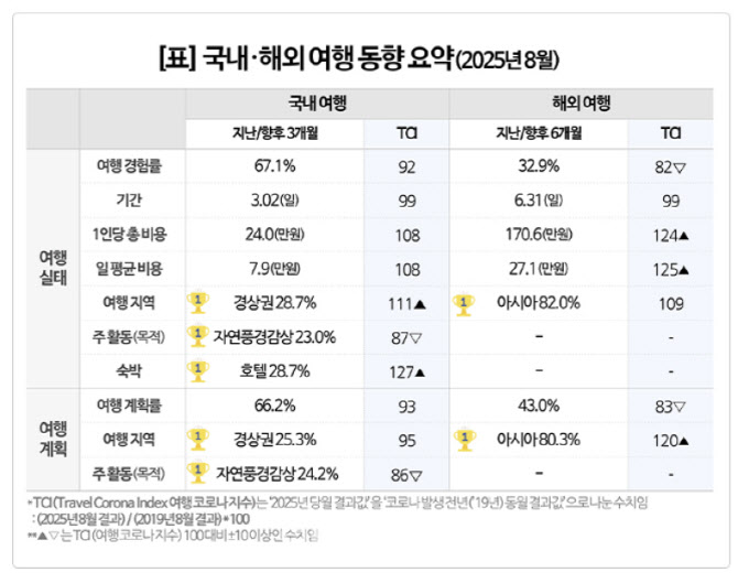 컨슈머인사이트 관계자는 “8월 여행 동향은 국내외 여행시장이 빠르게 회복되고 있음을 보여준다”면서 “하지만 항공권 가격, 환율, 국제 정세는 여전히 변수다. 정부 정책, 산업 투자, 소비자 트렌드가 맞물리면서 4분기 여행시장의 성장은 ‘정책 지원 속의 구조적 변화’로 요약된다. 국내외 여행업계는 생활관광·웰니스·체험형 콘텐츠를 중심으로 한 고부가가치 전략이 더욱 중요해질 전망이다.”고 조언했다.