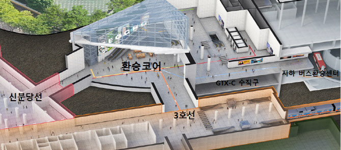 국토부 대광위는 양재역 환승코어를 GTX-C와 함께 준공한다는 계획이다.