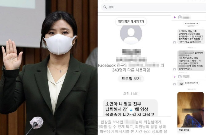 메시지에 따르면 협박범은 “네 딸들 전부 납치해서 XX살해 영상 올려줄게. 넌 너무 나대고 있어. XX아” “네 딸들 네가 보는 앞에서 XX하고 XX을 적출할 거다. 법보다 범죄가 빠르다” 등의 섬뜩한 말을 아무렇지 않게 적어 보냈다.