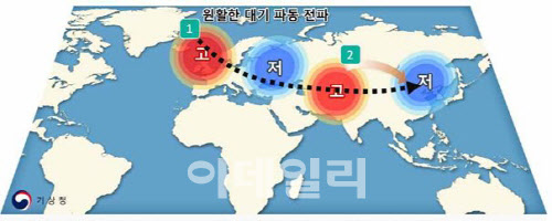 이처럼 큰 기온 변화는 지난 3월과 4월 북대서양에서 발생한 중위도 대기의 파동이 우리나라로 이동하면서 발생했다. 대기 파동에 의해 저기압과 고기압이 한반도를 주변을 번갈아 지나가면서 찬 공기와 따뜻한 공기를 국내에 유입시킨 것이다. 이 과정에서 일부 지역은 수증기가 유입돼 많은 양의 비가 강하게 내리기도 했다.