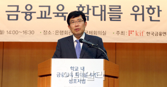 [이데일리 방인권 기자] 윤창현 한국금융연구원장 1일 오후 서울 중구 명동 은행회관에서 한국금융연구원 주최로 열린 '학교 내 금융교육 확대를 위한 심포지엄'에서 개회사를 하고 있다.