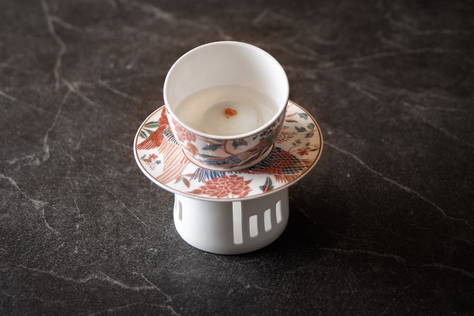 디저트로는 흑임자로 속을 채운 부드러운 경단 ‘닝보식 탕위안’이 나온다. 금목서 향이 은은하게 퍼지는 따뜻한 물에 금빛 금목서 꽃잎을 띄워 제공해, 탕위안을 한입 베어 물 때 꽃 속에 파묻히는 듯한 특별한 경험을 선사한다.