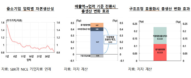 그런데 지원 규모를 더 늘리지 않아도 ‘지원 기준과 방식만 바꾸면 경제 전체 생산이 최대 0.7%까지 늘어난다’는 연구 결과가 제시되면서, 중소기업 지원제도 전반을 재설계해야 한다는 목소리가 커지고 있다.