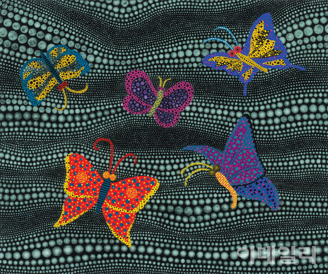| | 쿠사마 야요이의 ‘버터플라이 ‘TWAO’’(2004, 38×45.5㎝). 케이옥션 ‘1월 경매’에서 시작가 10억원부터 호가를 높여간다(사진=케이옥션). |