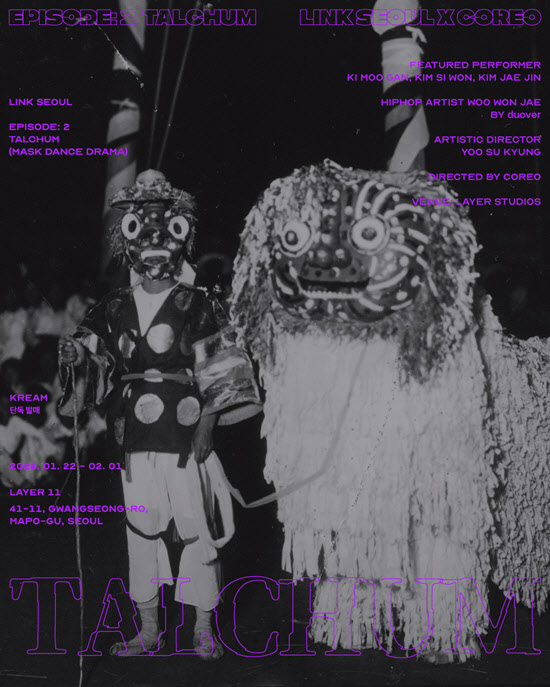 이번 프로젝트 역시 장르 간 경계를 허무는 파격적인 시도가 돋보인다. 댄스 레이블 ’꼬레오(COREO)‘의 유수경 대표가 총 연출을 맡아 기무간, 김시원, 김재진 등 실력파 무용수들과 함께 무대를 꾸민다. 특히 1월 24일과 31일 공연 피날레에는 래퍼 우원재가 합류하여 가장 한국적인 탈춤의 비트와 힙합의 리듬이 만나는 장르를 넘나드는 파격의 강렬한 순간을 예고하고 있다.