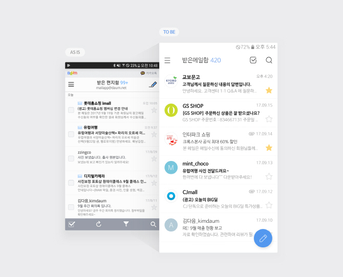 앱 최적화 작업을 통해 메일 목록을 불러오는 속도가 한층 빨라졌으며, 디자인을 전면 개편했음에도 기존 UX/UI를 최대한 유지함으로써 기존 이용자의 사용성을 배려했다.