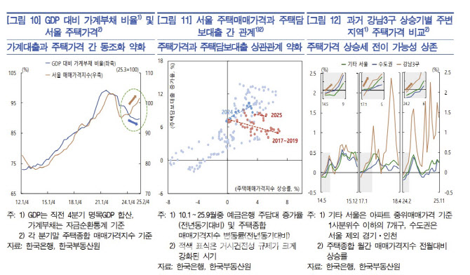한은은 23일 발간한 2025년 하반기 금융안정보고서에서 최근 수도권 중심의 집값 상승세가 규제 대상이 아닌 지역으로 확산할 경우 가계부채 증가세가 확대될 가능성이 있다고 진단했다.