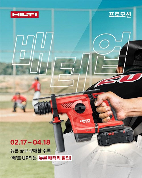 본 프로모션은 2월 17일부터 4월 18일까지 진행되며, 보다 자세한 사항은 힐티 코리아 공식 홈페이지, 공식 소셜 미디어 채널 또는 고객센터를 통해 확인할 수 있다.