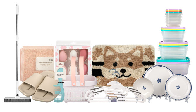 대표 상품은 △수납함·옷걸이·욕실화 등 홈퍼니싱 △보관용기·조리도구·도마 등 주방용품 △여행 파우치·운동용품 등 패션스포츠 △거울·빗·브러쉬 등 뷰티용품 △지우개·클립·풍선 등 문구 △USB 허브·충전 케이블 등 일상생활 필수제품들이다.