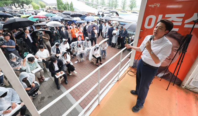 이준석 후보는 2일 경북 경산시 영남대 유세에서 “영남대학교가 바뀔 때 TK가 바뀌고 TK가 바뀔 때 대한민국의 보수 세력이 바뀌고 그것이 바뀔 때 대한민국이 다시 한 번 중흥기를 맞을 수 있다”라고 말했다. 이준석 후보가 연설하는 동안 영남대 교정엔 비가 왔지만 지지자들은 비를 맞거나 우산을 쓰고 연설을 지켜봤다.