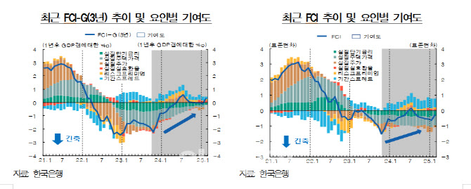 쉽게 말해 FCI는 현재의 금리가 높거나 혹은 낮은지에 대한 ‘수준’을 판단한다면, FCI-G는 최근 금리가 오르는 추세인지, 혹은 내리는 추세인지에 대한 ‘변화’를 판단하다는 것이다. 두 지수는 각각의 특징이 있고 다른 지수의 단점을 보완해주는 측면도 있어 금융상황을 판단해 나가는데 상호 보완적으로 활용될 수 있다는 게 한은의 설명이다.