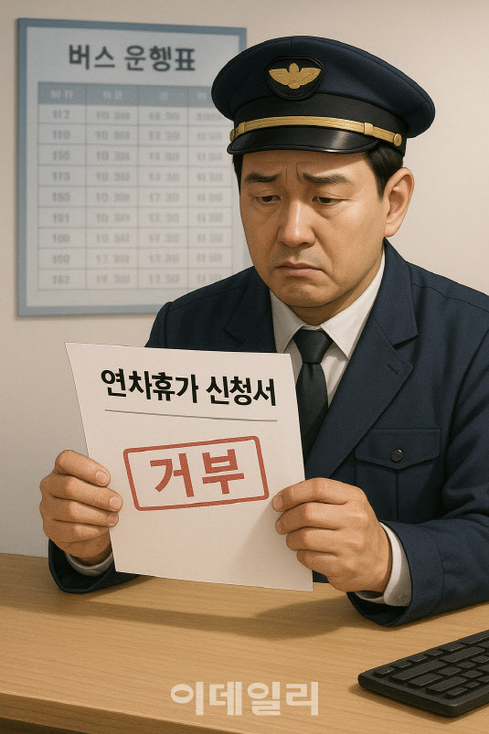 부산 소재 시내버스 업체 대표이사인 A씨는 버스 운전기사 B씨가 2019년 7월 5일 오후 3시30분경 신청한 ‘7월 8일 오후 연차휴가’를 거부했다. A씨는 B씨가 단체협약상 휴가 신청 규정을 위반했다는 이유를 들었다.