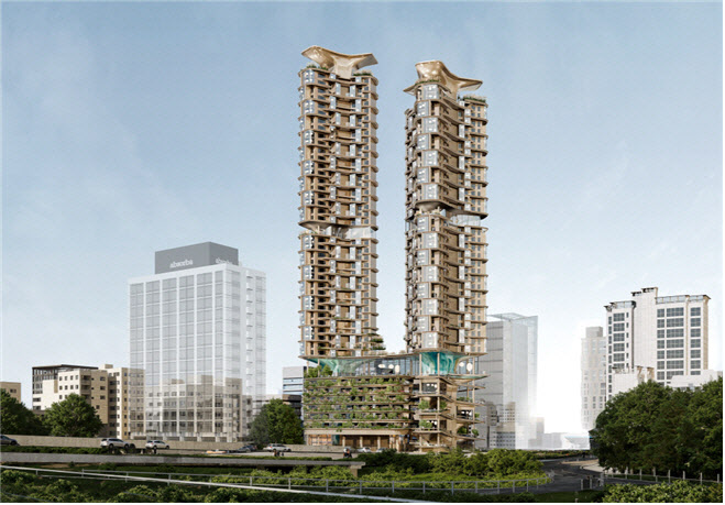 한국적 자연관인 ‘산수’를 디자인 콘셉트로 산과 강을 곡선형 매스로 재해석한 산수경은 3개의 열린 공간, 지하철과 입체적으로 연계된 저층부 계획으로 공공성이 극대화돼 시민과 교감하는 천호대로의 상징적인 건축물이 될 것으로 예상된다.