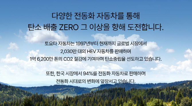 | | 토요타코리아의 ‘비욘드 제로’ 캠페인 소개. (사진=토요타코리아 홈페이지) |