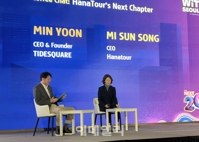 | | 27일 서울 여의도 페어몬트 앰배서더에서 타이드스퀘어가 주최한 여행 기술 콘퍼런스 ‘WiT 서울 2025’에서 발표를 하고 있는 송미선 하나투어 대표 (사진=이민하 기자) |