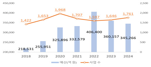 정부 지원사업 규모도 갈수록 확대되는 추세다. 정부의 중소기업 지원사업은 코로나 팬데믹 이전 대비 규모와 사업 수 측면에서 모두 확대됐다. 특히, 실증 분석 결과 정부 지원금이 1% 늘어날수록 수혜기업의 수출액은 0.009%, 수출 국가 및 품목 수는 0.04개 증가하는 것으로 나타났다. 또한 정부 지원금 확대 효과는 1~2년 후에도 유지되는 등 중장기 성과도 확인됐다.