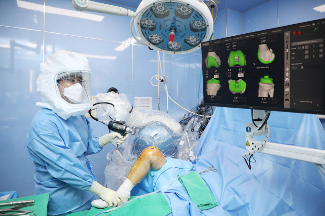 인공관절 재수술은 기존 인공관절을 제거해야 하고, 이미 뼈 손상 또는 변형이 있거나 주변 조직 유착으로 해부학적 구조 파악이 어려울 수 있어 첫 수술보다 훨씬 복잡하고 어렵다. 또한, 고령 환자의 경우 고혈압, 당뇨 등 기저질환을 동반하는 경우가 많아 수술 난도가 더욱 높아진다. 이에 최근에는 수술의 정확도와 안전성을 높이고 보다 정교한 수술을 위해 로봇 시스템을 활용한 인공관절 재수술이 주목받고 있다. 로봇 시스템은 특히 재수술에서 중요한 다리의 좌우 균형과 정렬을 더욱 정확하게 맞출 수 있다는 장점이 있다.