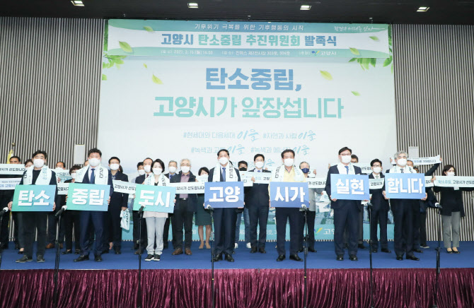경기 고양시는 15일 킨텍스 제2전시장에서 탄소중립 추진위원회 발족식을 갖고 2050년까지 탄소 중립을 달성한다는 고양 선언문을 선포했다.
