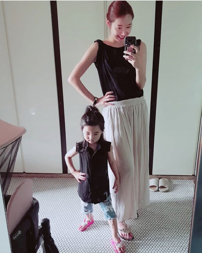 공개된 사진 속 소이현은 집 근처 공원에서 첫째 딸 하은과 함께 즐거운 시간을 보내고 있는 모습이다. 소이현은 민소매 티셔츠와 시원한 소재의 롱스커트로 편안하면서도 스타일리시한 여름 패션을 선보였다. 하은은 양갈래 머리와 하늘색 원피스로 인형 같은 비주얼을 자랑했다.
