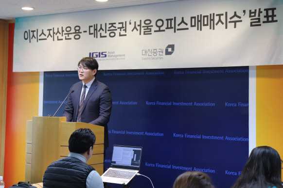 28일 이지스자산운용과 대신증권은 여의도 금융투자협회에서 기자간담회를 통해 ‘서울 오피스 매매지수’를 발표했다.