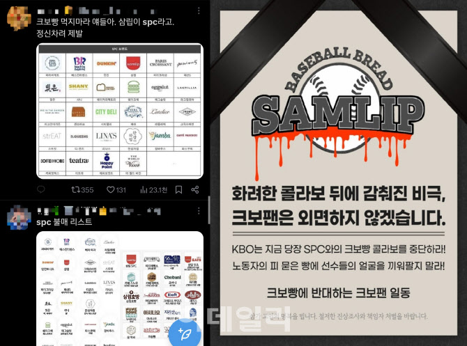 SPC삼립과 KBO(한국야구위원회)가 만든 ‘크보빵’을 즐기던 야구팬들도 불매에 동참했다. 크보빵은 프로야구 선수들의 얼굴이 들어간 ‘띠부씰’과 함께 판매돼 최근 큰 인기를 끌고 있었다. 다만 사건 발생 하루 만인 20일 ‘크보빵에 반대하는 크보팬 일동’은 협업에 반대하는 서명운동에 나섰다. 이들은 홍보 포스터에 “노동자의 피 묻은 빵에 선수들의 얼굴을 끼워팔지 말라”고 적었다. 한화 이글스 팬인 구모(30)씨는 “띠부씰에 정신이 팔려 많이 사 먹었는데 지금부터라도 그만 사 먹을 것”이라고 했다.